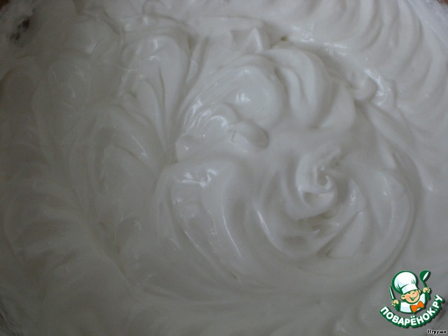 Белки взбить со стаканом сах. пудры до состояния плотной белой массы, добавив лимонную кислоту. -