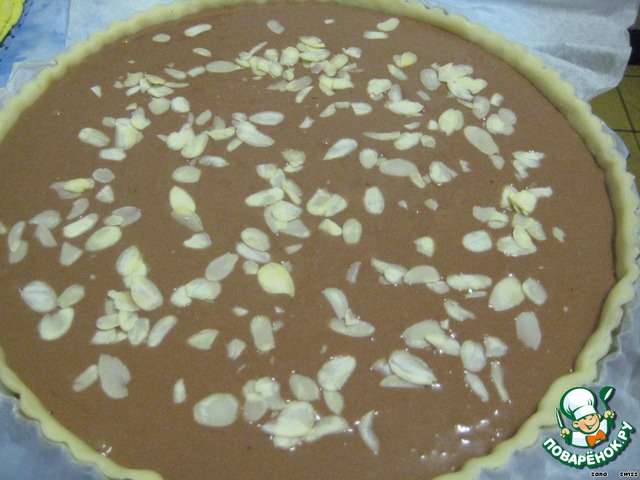 Выливаем этот крем на тесто, посыпаем оставшимся миндалем и ставим в духовку на 40-45 минут.