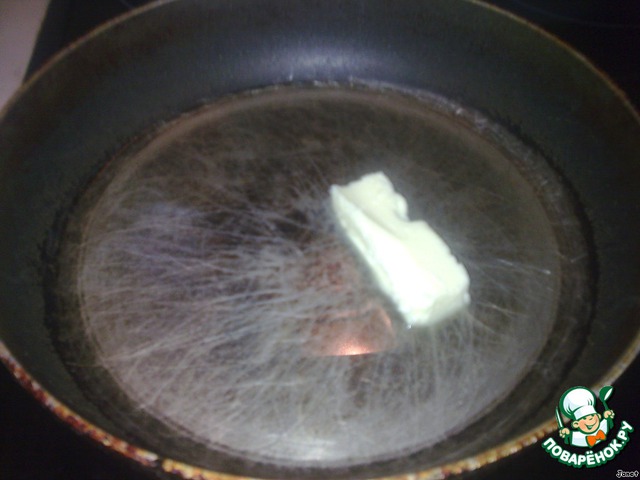 На сковороду льём немного любого рафинированного масла и добавим кусочек сливочного масла.