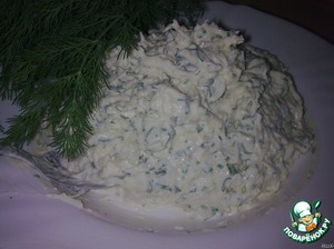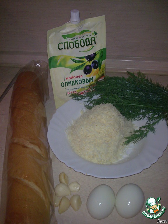 Потереть на самой мелкой тёрке сыр, яйцо. Укроп мелко нашинковать. Выдавить через чеснокодавку чеснок. Добавить майонез.