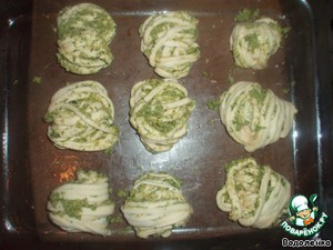 Теперь начинаем формировать булочки. Берем немного наших спагетти....
