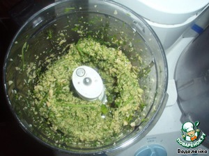 Делаем начинку. Я взяла сыр, зелень и чеснок "на глаз" и по своему вкусу и измельчила все в блендере.