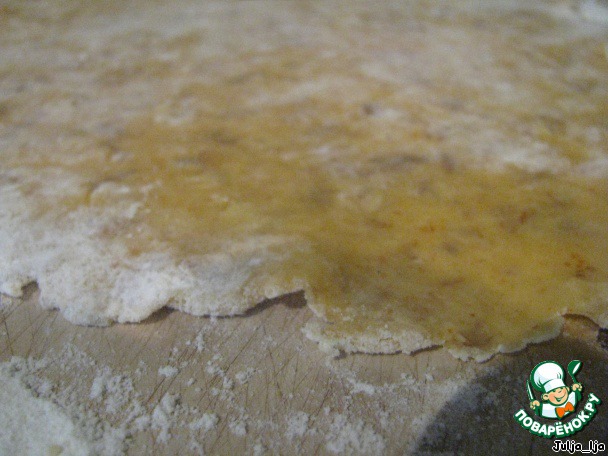 Остатки теста собираем и снова раскатываем. Если собрать уже сложно (тесто плотное + раскатка на муке), можно добавить немного молока и вымесить ещё раз. -