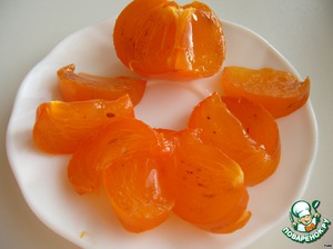 Хурму режем тонкими дольками, предусмотрительно убираем косточки.