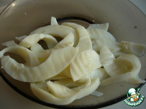 Яйца и кальмары (я их забыла сфотографировать) режем полукольцами, соломкой.
