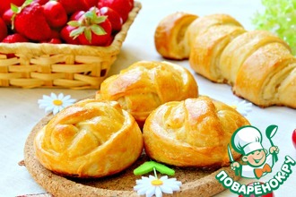 Теперь укладываем плюшки на противень (заранее смазанный сливочным маслом или накрытый пергаментной бумагой) и смазываем бортики желтком.