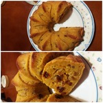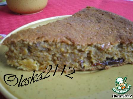 • Вот такой вкусный пирог получается. Тыквы в разрезе нет. Видно только изюм, курагу и грецкие орешки.