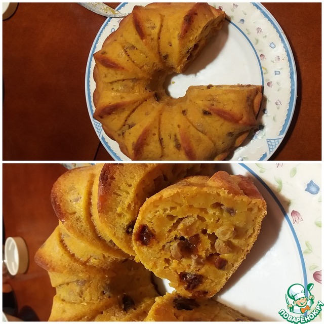 пирог офигенский! не было ни изюма, ни орехов, никаких сухофруктов, главный ингредиент же тыква!!! Но! в следующий раз обязательно добавлю орехи! они прям просятся сюда!!! очень вкусно! спасибо за рецепт. забираю в КК и буду часто им пользоваться.
