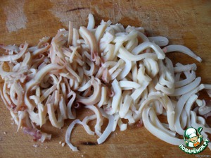 Пикантный, остренький салатик из кальмаров, корейской моркови и кучи всего вкусного.
