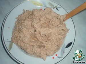 Вот такая масса у нас получилась. Пробуем на вкус и добавляем соль, перец и специи по вашему вкусу. Если масса получилась жидковата, просто добавьте в нее немного измельченных орехов.