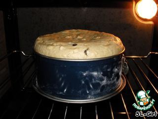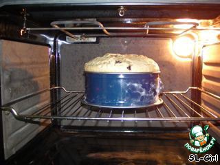влить в нее готовое тесто, но не доверху, потому что тесто поднимeтся позже. -