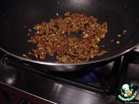 Добавляем имбирь, чеснок, перец и сухие специи. Обжариваем 15 секунд.