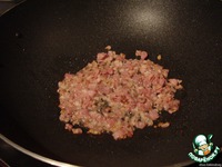 Вок или большую сковороду раскаляем и огонь не убираем. Все блюдо готовится очень быстро и при высокой температуре, поэтому очень важно постоянно мешать. В растительном масле поджариваем измельченный бекон.