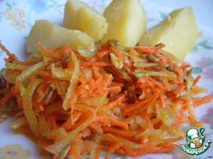 Морковь и редьку перемешиваем (удобней это делать двумя вилками), заправляем растительным маслом. Лучше использовать нерафинированное подсолнечное масло, совсем немного…Не забываем о семечках. Именно они «погасят» горечь редьки и сделают салат еще более ароматным.