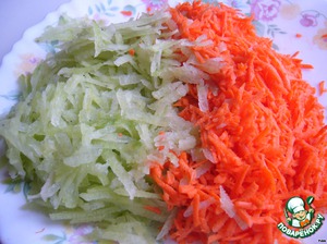 Овощей должно быть примерно равное количество. Чистим редьку и морковь, трём их на крупной терке.
