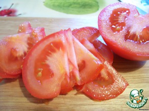 Помидор режем тонкими кусочками