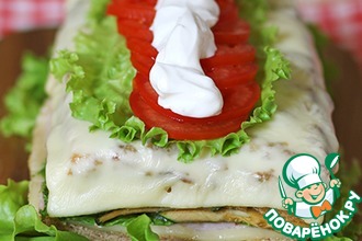 Накрыть третьим, смазанным паштетом с наполнителем из кетчупа.