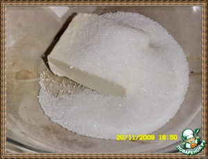 Масло взбейте с сахаром (3 минуты), взбивайте до получения кремообразной массы.