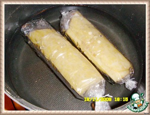 Pазрезать на 2 части, каждую поместить в рукав жаропрочный (автор - раньше делала в марле) и обвить нитями. Закрепила проволочкой (приложенные к рукаву).