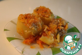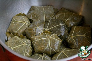 Накрыть оставшимися листьями, если есть. Если нет - можно положить тарелку. Поставить на сильный огонь, довести до кипения, убавить. Варить 1,5 часа. Подавать с кефирным напитком. Мой рецепт можно найти здесь [url=http://www.pova renok.ru/recipes/sho w/35612/][b]>>>[/b][ /url]