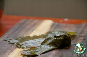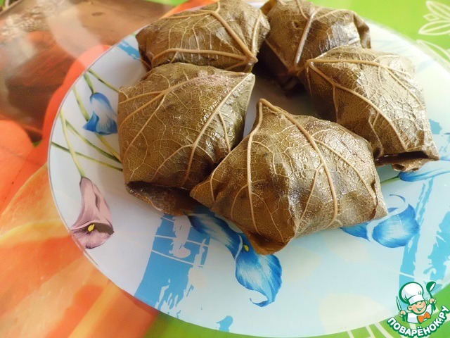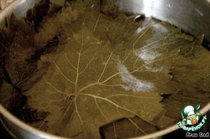 - Лист виноградный (я беру засоленные листья на рынке на лотке с соленьями, но видела во многих магазинах) — 50 г