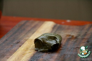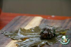 В середину положить кружочек из фарша. Брать по чуть-чуть, чтобы долма была небольшого размера.