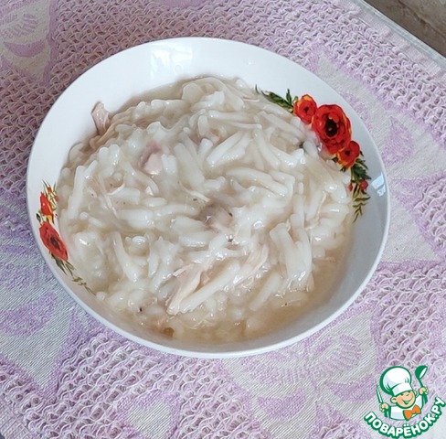 Для разнообразия лапшу можно заменить на рис или пшено и добавить резаную зелень (укроп или петрушку).
