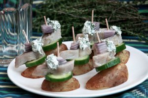 Рецепт «Канапе с картофельными дольками и сельдью»: