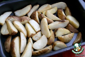 Поместить картофельные дольки на сухой противень, посолить, поставить в разогретую до 225 градусов духовку на 15 минут.