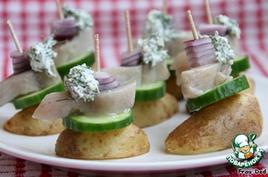 Рецепт «Канапе с картофельными дольками и сельдью»: