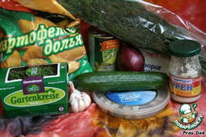 Ингредиенты для «Канапе с картофельными дольками и сельдью»: