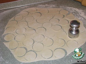 Раскатываем тесто, вырезаем кружочки,