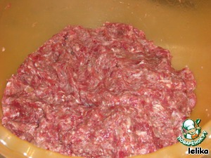 Пропускаем мясо с луком через мясорубку.