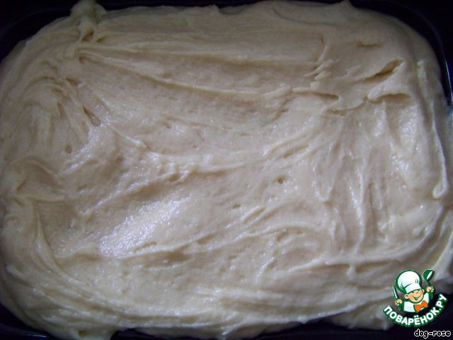 Тесто получается нежное, выкладываем его в форму (если есть разъемная, то совсем хорошо). Печется быстро, минут 20–25 (при 200 град.). -