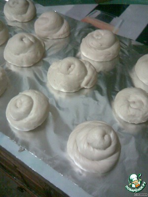 3.Сформировать из теста жгутики и "завить" "улитками" (можно просто скатать шарики), выложить на бумагу на расстиянии 5 см друг от друга , накрыть пленкой и поставить подходить