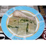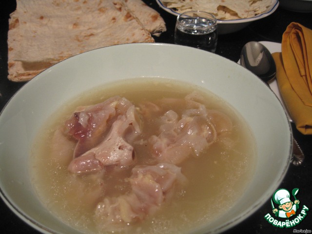 каждый откладывает свою порцию и накрывает лавашом, а бульон сдабривает чесноком,солит и крошит высушенный лаваш, а дальше...