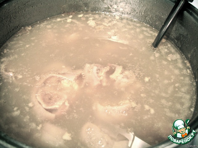 Ноги опаливают, скоблят, промывают, разрубают вдоль и вымачивают сутки-двое, меняя воду, и кладут вариться, залив водой так, чтобы она покрывала их не менее чем на 20 см.