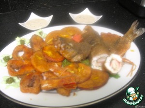 Рулеты из рыбы кефаль с жаренными апельсинами