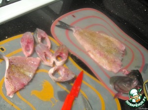 Вторую рыбу нарезать на куски и потом выпотрошить.