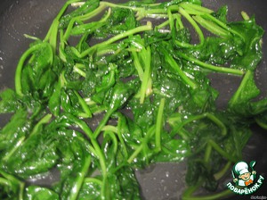 Выкладываем на тарелку шпинат, вареники псыпаем орешками и тертым сыром ("Пармезан"). Сметану кладем по желанию.