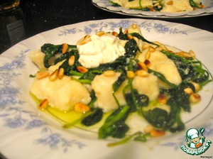 Рецепт «Ленивые вареники со шпинатом и кедровыми орешками»: