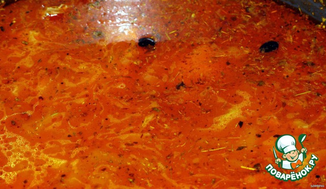 В конце жарки добавляем чеснок, 1/2 часть от общей, томат-пасту, немного воды и тушим около 10 минут на слабом огне.