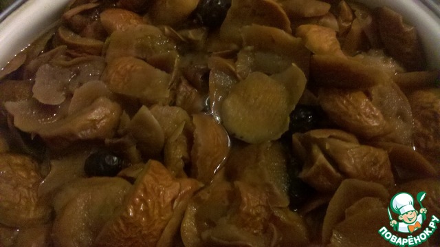 - Сухофрукты (яблоки, груши, вишня, сливы (чернослив), курага, изюм) — 500 г