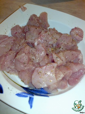 Порезать курицу, посолить, поперчить. Обжарить на подсолнечном масле с луком до готовности