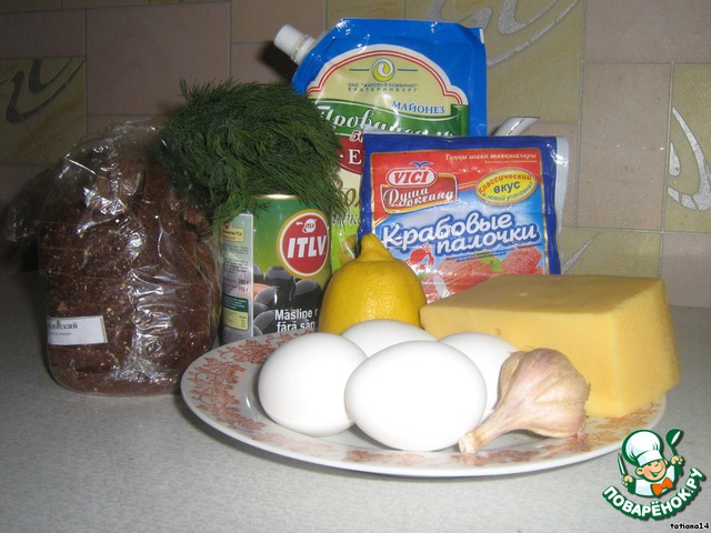 Нежный, с тонким вкусом лимончика. Рецепт взят из местной газеты, знаю подобный салат есть на сайте, но попробуйте и мой вариант. Вкус бородинского хлеба, чуть чесночка, нежный слой яиц... просто вкусно!