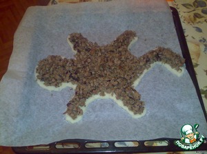 Укладываем на него фарш, так чтобы в лапках и хвостике он тоже был :-) .