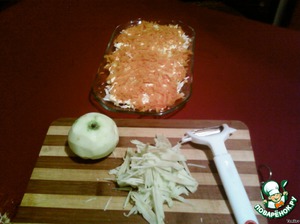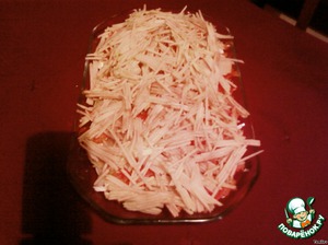 4 слой - вареная морковь - мелко порезать (я терла на терке для корейской морковки).