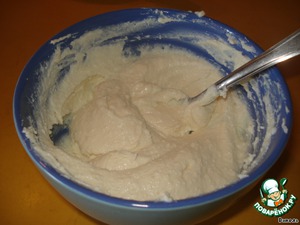Для крема творог перетереть через сито и смешать со сгущенкой.