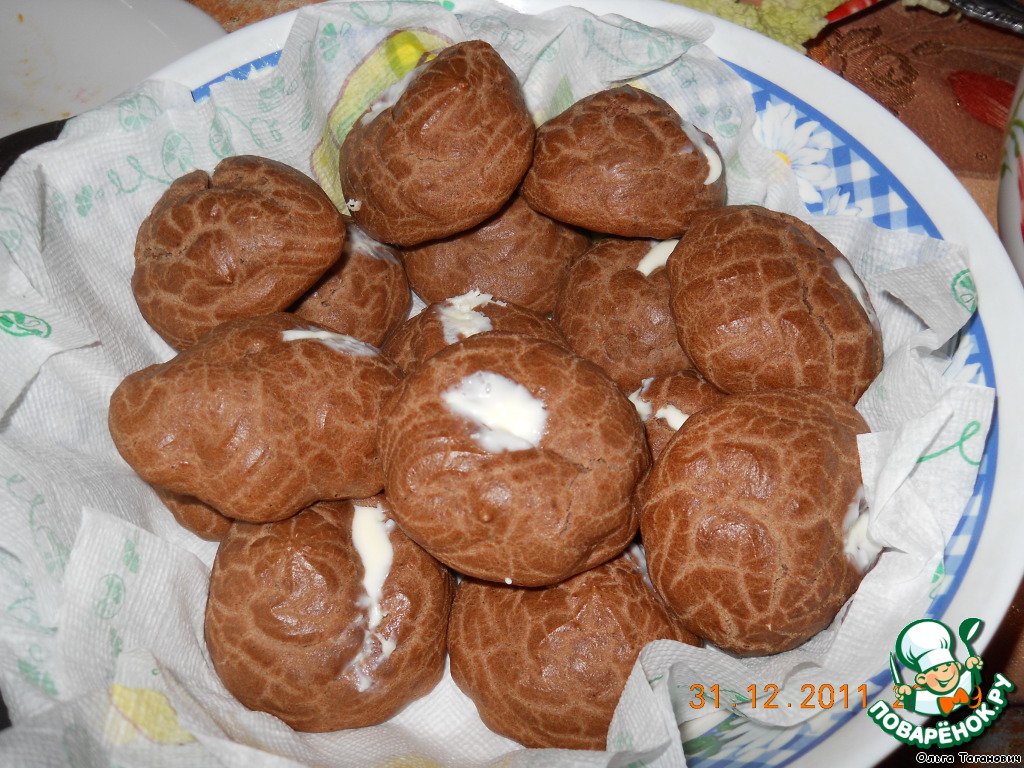 Эклерчики -разной формы,так как примеривалась к кулинарному мешку.Училась...