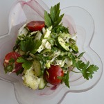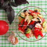 [+5]Заправила оливковым маслом; помидорки у меня черри (5 штучек); базилика добавила 1 ч.л.